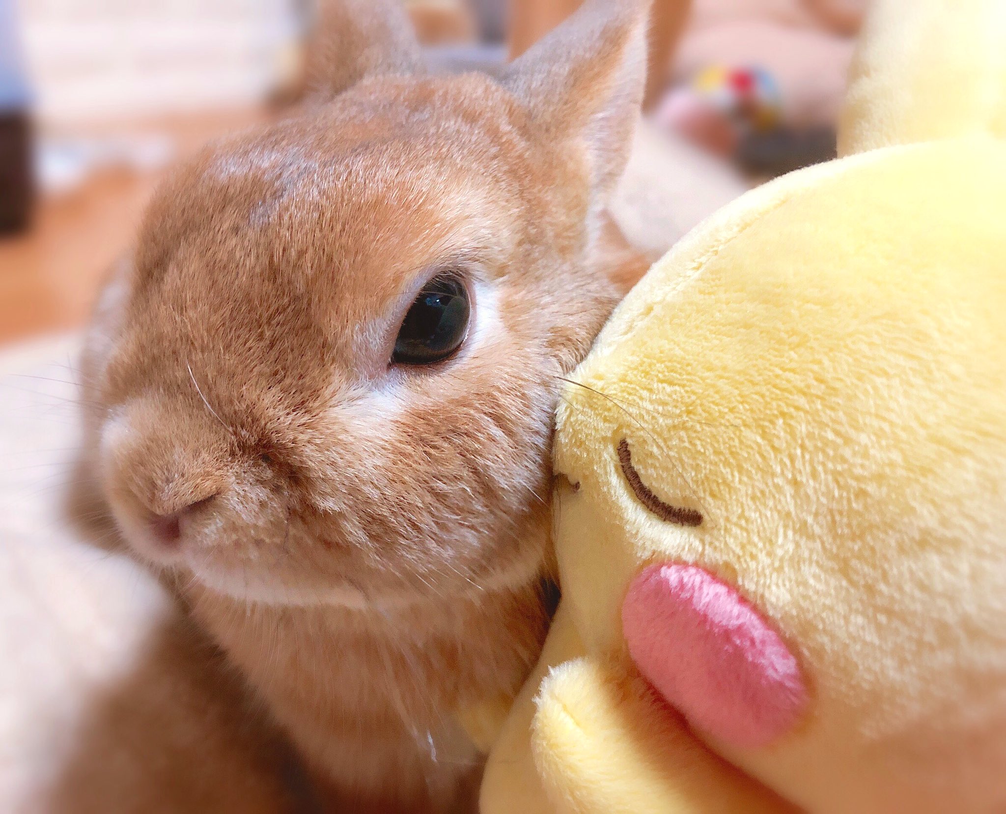 ラン さんのインスタグラム写真 ラン Instagram 茶色仲間が増えたので 熱烈キッスでご挨拶 W W o チュッ ポケモン イーブイ イーブイかわいい うさぎ ネザーランドドワーフ Rabbit Bunny Bunnystagram Rabbitstagram Cute かわいい ふわもこ部